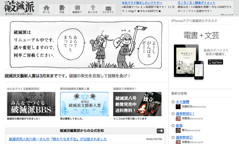 添付ファイル:破滅派おやすみしてごめんなさい 2012 年 12 月 31 日 cf217724f7a58ae31615c85cb2fff7a8.png (image/png) 286.27KB 高橋文樹.com 投稿一覧 告知 2012年高橋文樹.com10大ニュース 破滅派おやすみしてごめんなさい 破滅派おやすみしてごめんなさい その他のファイル 知らぬ間にコスプレのメッカとなっていた稲毛海浜公園 電子書籍販売プラグインLiterally WordPress 破滅派おやすみしてごめんなさい 11月に登った日向山 » 元の記事「"2012年高橋文樹.com10大ニュース"」を読む «